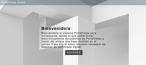 8. Se abrirá una página en el navegador con la pantalla inicial de la firma de invitados, debe acceder con su certificado digital, para ello debe tener la última versión de Autofirma instalada.