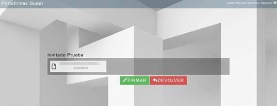 9. Una vez identificado/a se le mostrará la información de la petición y la posibilidad de “Firmar” y de “Devolver”.